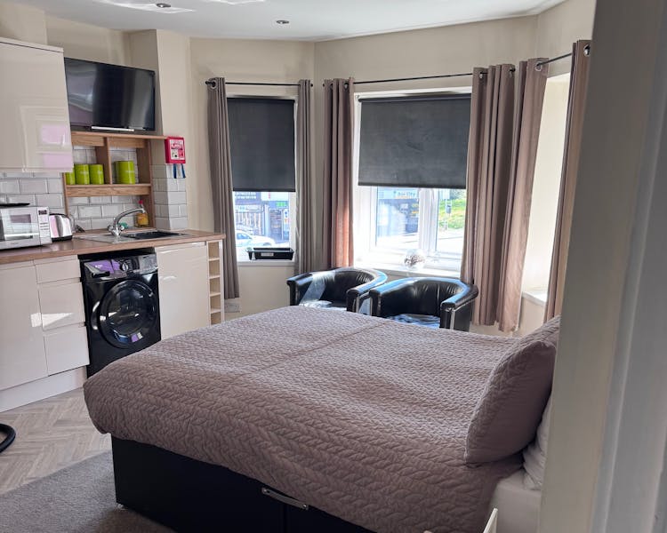 Modern, clean, and fully equipped apartments with private bathrooms, kitchens, some apartments have washing machine. Prime town centre location, station, . A comfortable, guest-loved home from home.