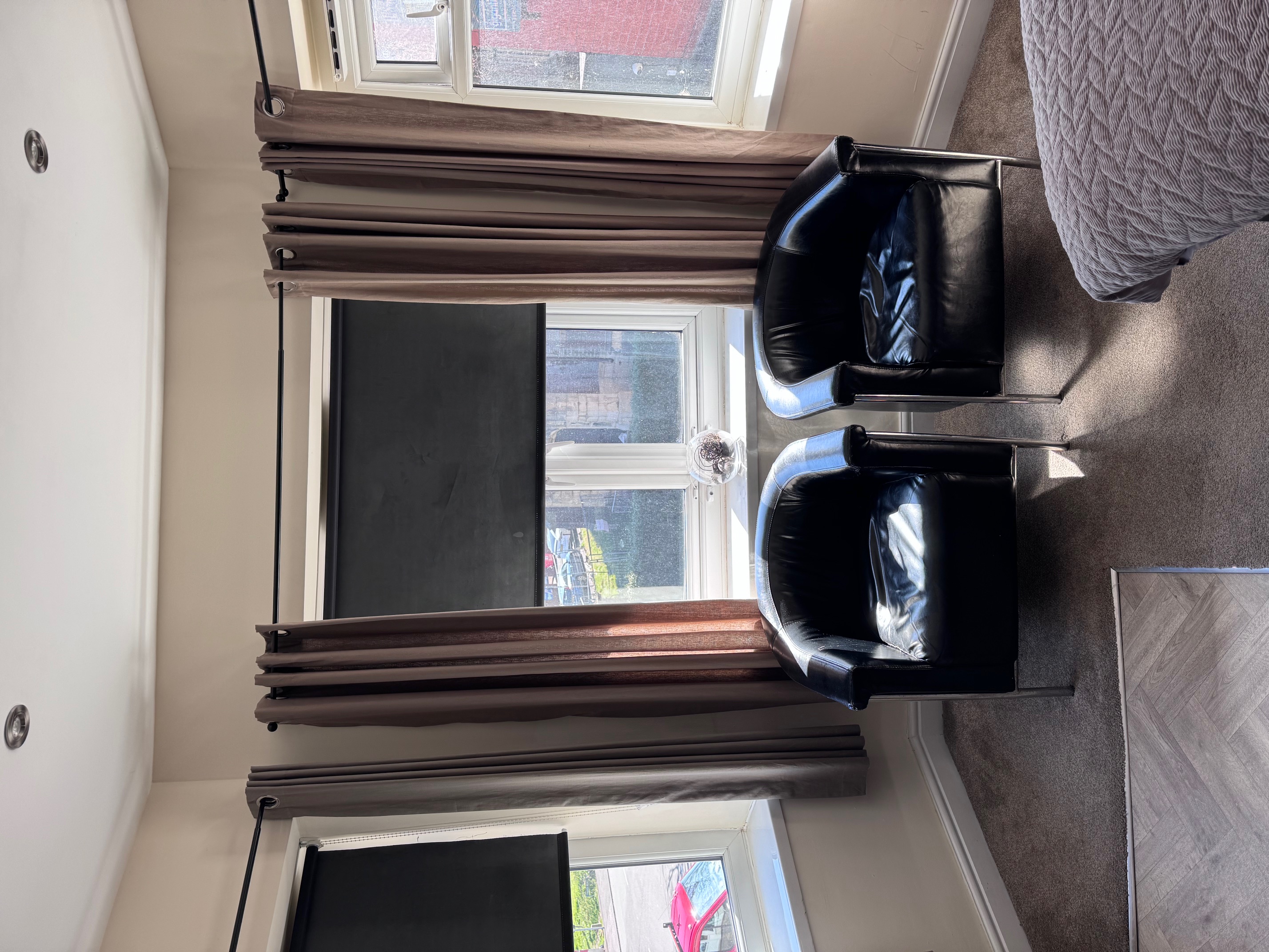 This is a studio apartment and 1 bathroom with a shower and a hairdryer. The well-equipped kitchen has a stovetop, a refrigerator, kitchenware and an oven iron and ironing board. The apartment features carpeted floors, a seating area with a flat-screen TV, a wardrobe, an electric kettle, as well as washer dryer, toaster, microwave and a air fryer. The unit has 1 bed. This is a first floor apartment with stairs.